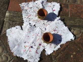 This first experiment in paper making was to try and make interesting hand made paper that could then be made into greetings cards, invites, gift tags or bookmarks. I wanted to embed seeds into the paper so that it could be recycled again with a floral result.