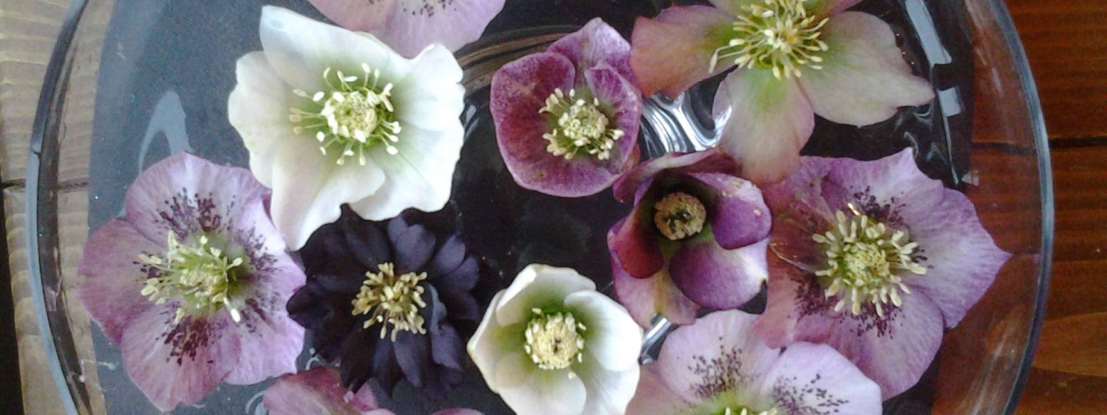 Hellebores do not make great cut flowers because the stems soon flop and the real beauty of the flowers is mainly hidden on the inside but you can snip off just the flowers and create a stunning floating display as a table centre piece which lasts longer than the cut stems.
