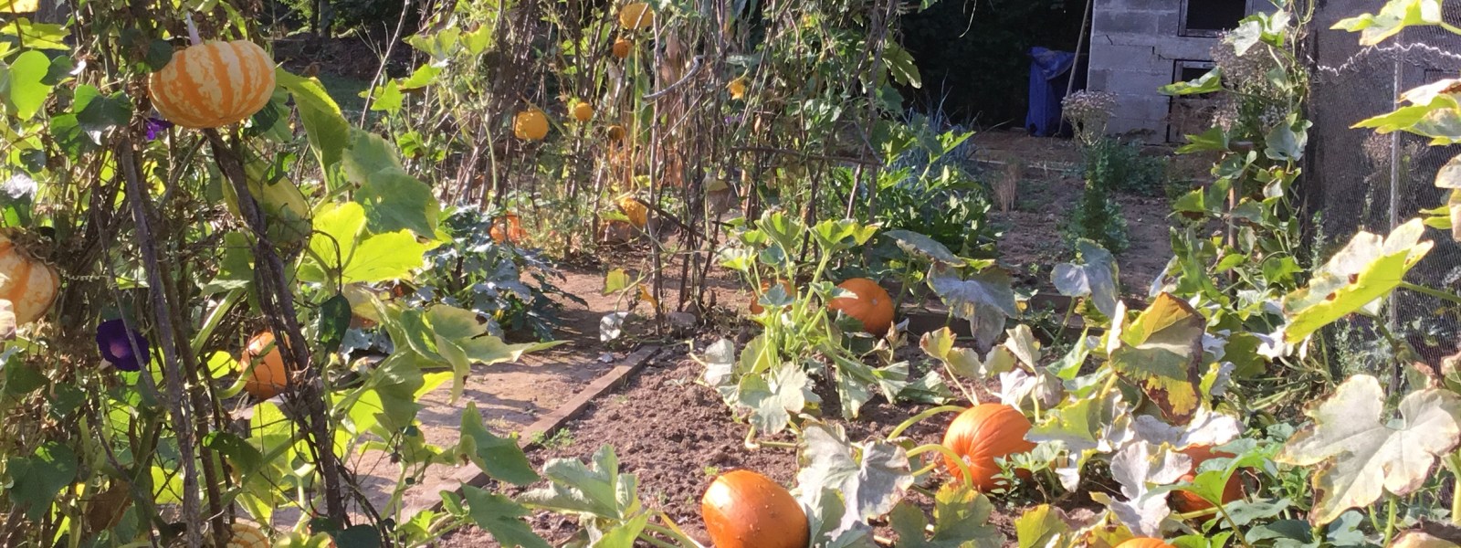 The dry weather and sunshine has produced a ripe crop of squash rather early this year. The orange, yellow green and blue globes were not ready to harvest until October last year but already the plants are dying back, revealing the ripe fruits that will keep us going in pumpkin soup all winter!