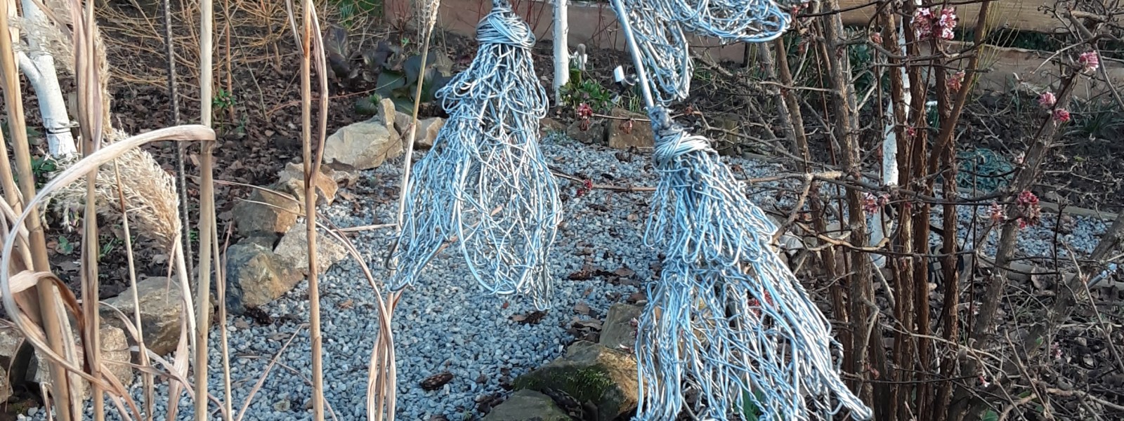 Learn how to create flower garden sculptures out of chicken wire. These beautiful harebell (or maybe Dierama flowers) are made over a full day workshop that includes