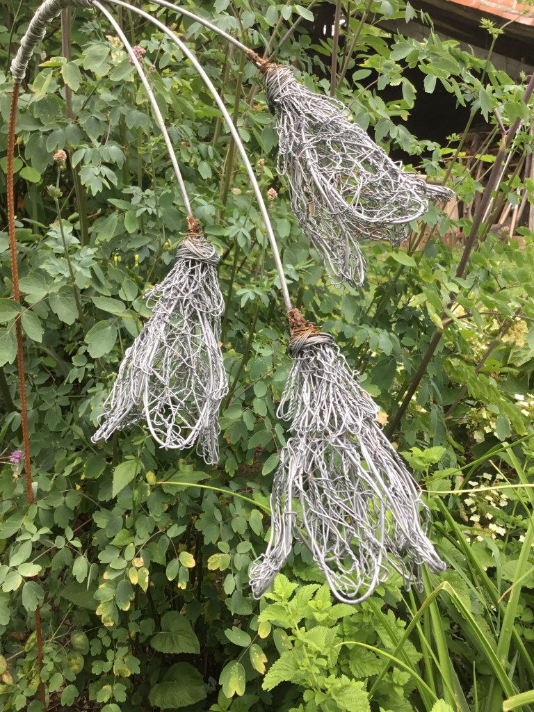 Learn how to create flower sculptures out of chicken wire for the garden. These beautiful harebell (or maybe Dierama flowers) are made over a full day workshop that includes the materials to make three flowers on a spike (height approximately 1. 2 metres).