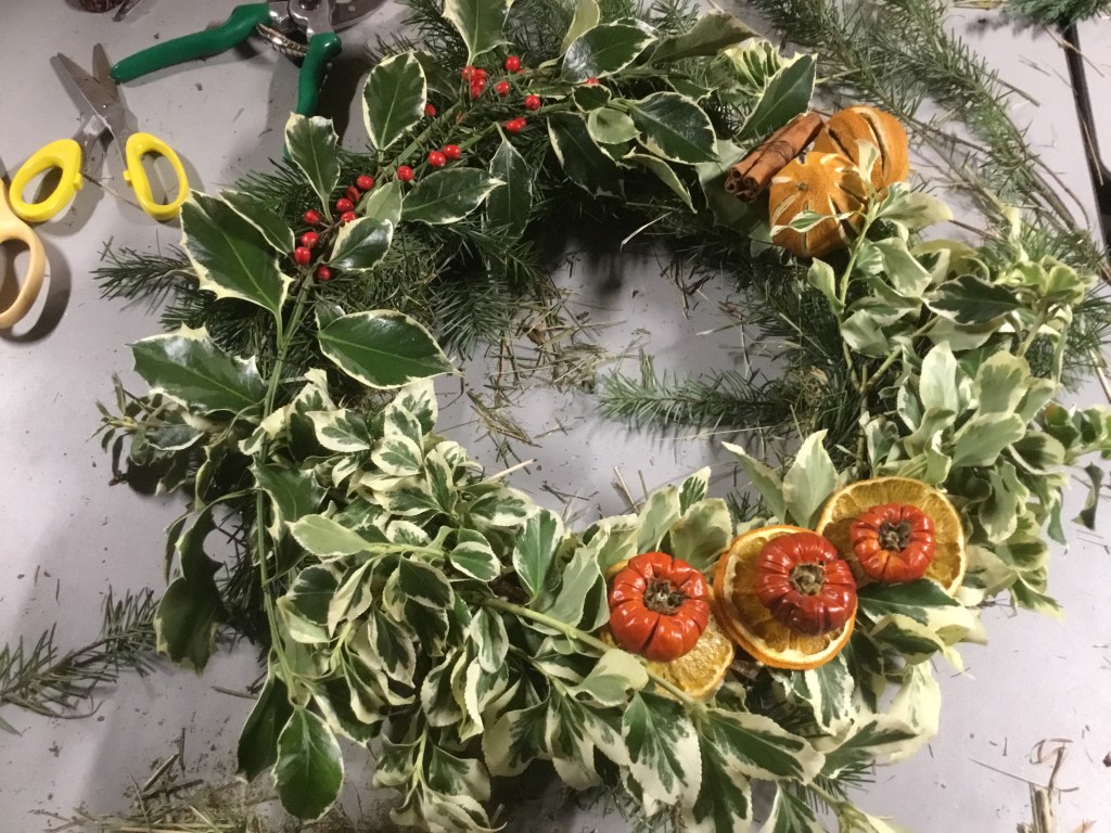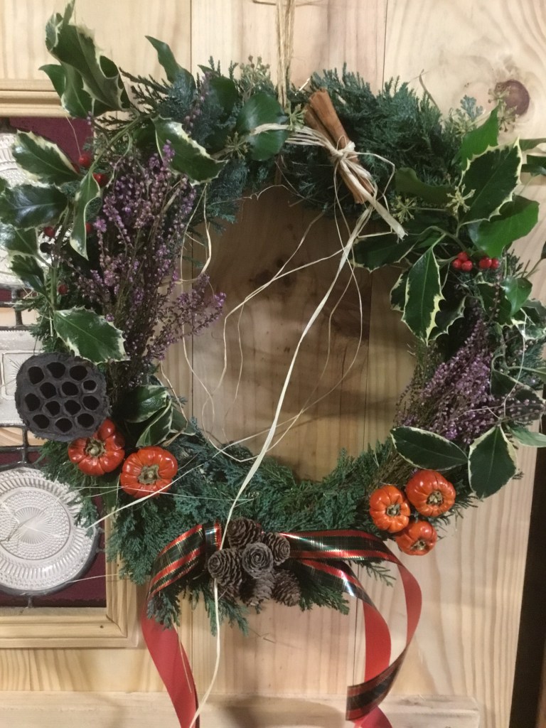 We have four dates planned for our popular Christmas Wreath workshops, the cost is 40 euros per person, all basic materials are included in the price: The frame, all fresh greenery, a ribbon/bow and three decorations. We will also serve tea/coffee/mince pies midafternoon.