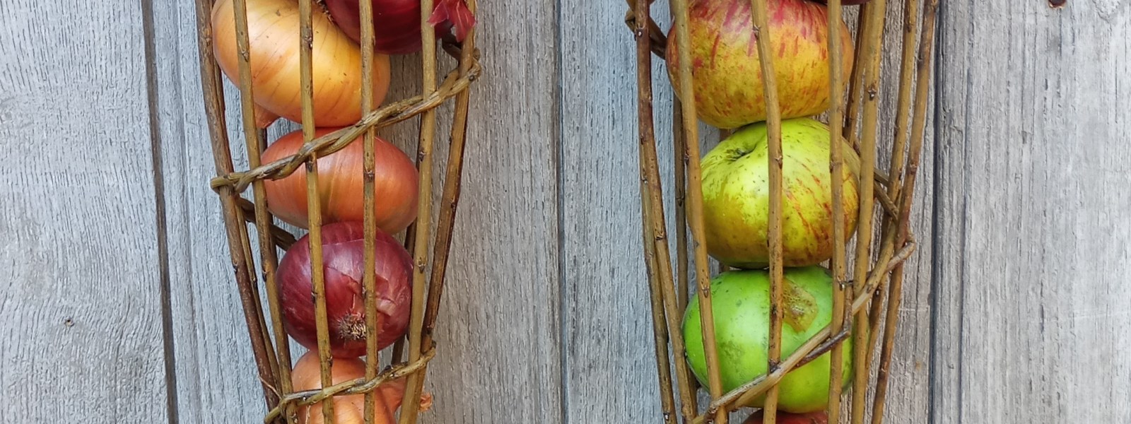 Learn basic weaving skills and create a decorative basket that can be used for storing garlic & onions or you can use it as a bird feeder with either apples or fat balls (these are a great way to avoid those plastic net bags).