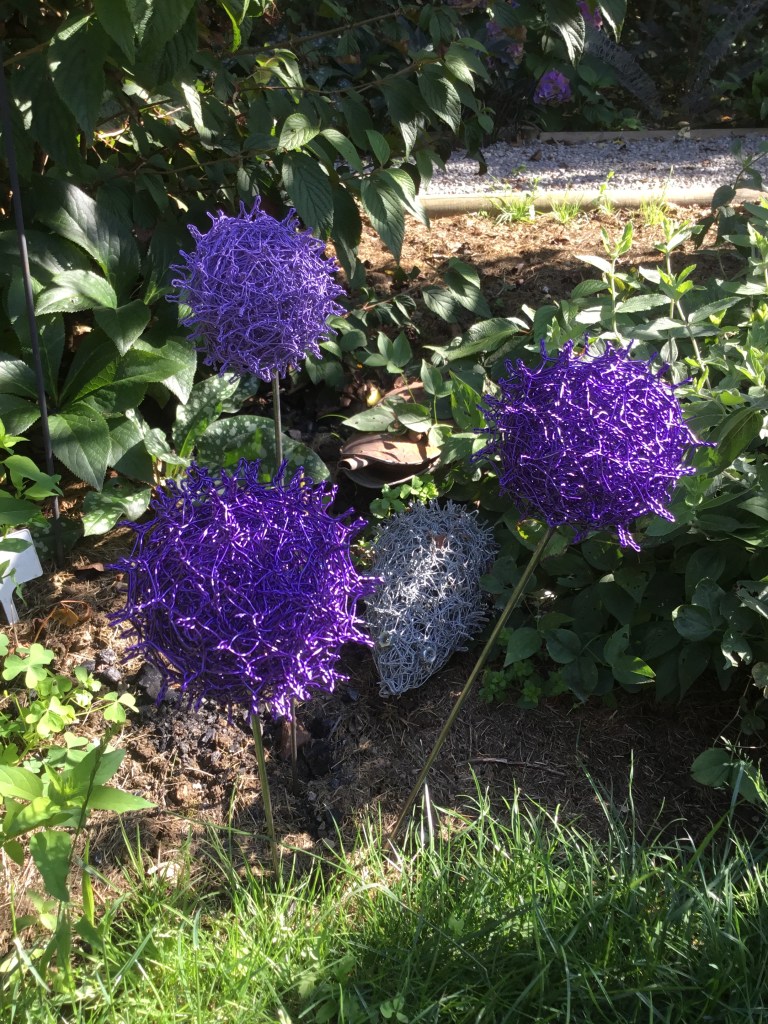 The workshop will be held in the craft room at the Ceramics cafe ‘Terracotta Ateliers Créatifs’ 9 Bd de L Hôtel de ville, 87500 Saint-Yrieix-la-Perche, on Thursday 26th June 2pm-5pm. You will make three ‘Allium’ flowers on rods (50cm tall) to decorate your garden – They are everlasting and need no watering! The cost of the workshop is 50 euros per person (all materials are included plus tea/coffee/biscuits)