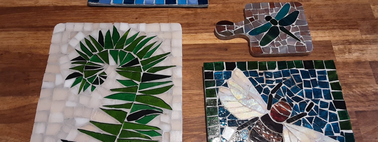 This workshop will take place on Tuesday 21st October 2025 10am-4pm. You will create your mosaic on bamboo chopping boards 20 x 30cm. Price 65 euros per person – the price includes all materials needed to make your mosaic board plus tea/coffee/biscuits but you will need to bring a packed lunch. If you would like to join us please either email us at: lejardincreatif87@gmail.com or use the contact form below the gallery (in either case please check your SPAM/Junk mail if you do not get a reply from us within 2 working days.